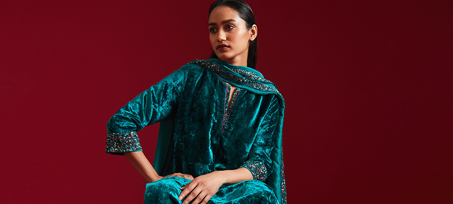 Invest in a sleek velvet kurta this wedding season. While the warmth of velvet makes it the perfect thing to wear in mellow Indian winters, its luminous sheen renders it ideal for sporting at weddings and formal events. With its distinctly rich and royal aura, a solid velvet kurta in vivacious maroon or silver can itself be a statement-making attire. Yet, you could choose to be a little more fanciful and go for velvet kurtas with sequin-work and tilla embroidery.