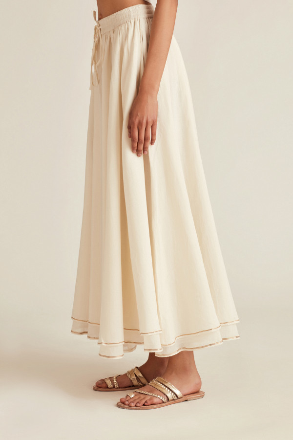 This style is versatile and can we worn as a sharara as well as a skirt. Perfect for festive evenings when you want to keep things special and subtle. Pair it with a cropped shirt or a long kurta and twirl into the festivities.